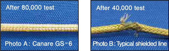 - Center conductor with 127 fine 0.1 mm Φ strands (50 for GS-4) increases durability.