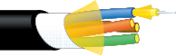 Particularly rugged multichannel fiber-optic cable designed for mobile applications.